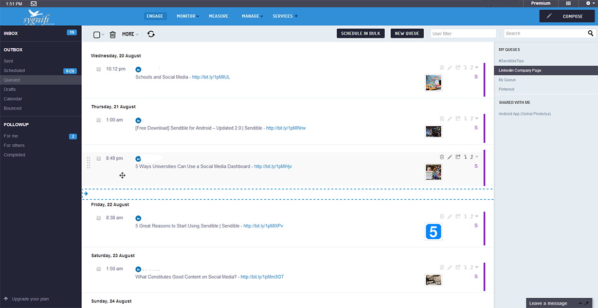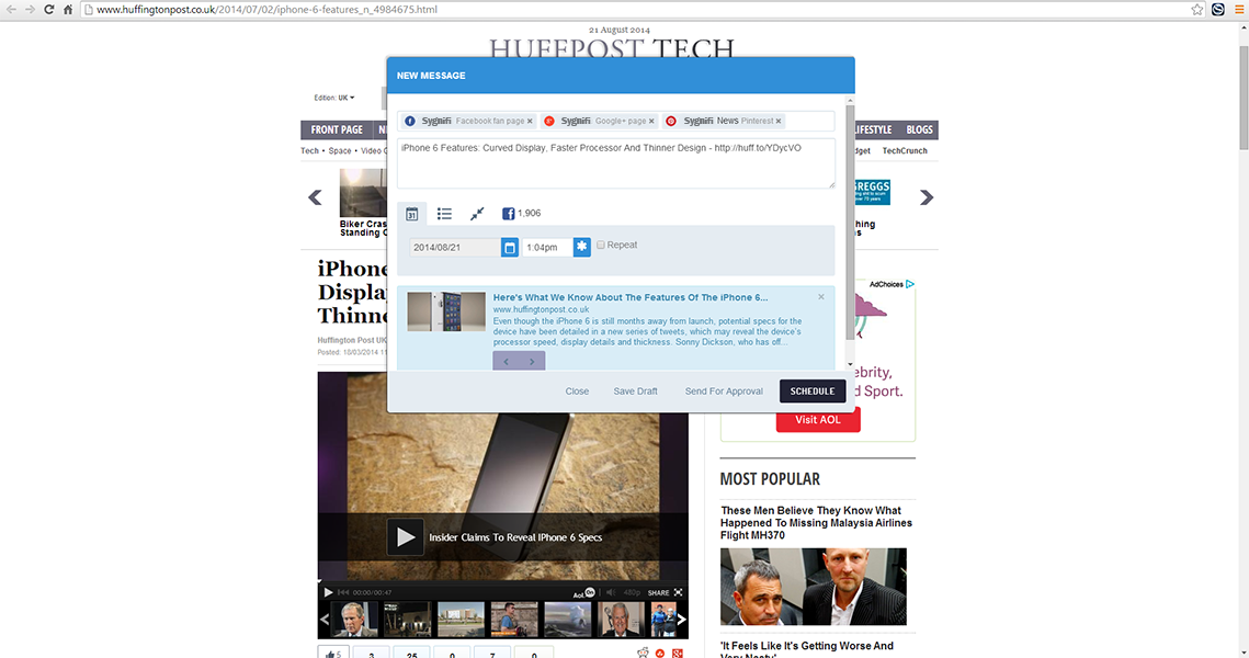Install our Chrome Plugin or Bookmarklet and take SmartSocial with you when you're browsing the web. If you see something you want to share, simply tap the SmartSocial Compose Box and publish now or schedule for later!