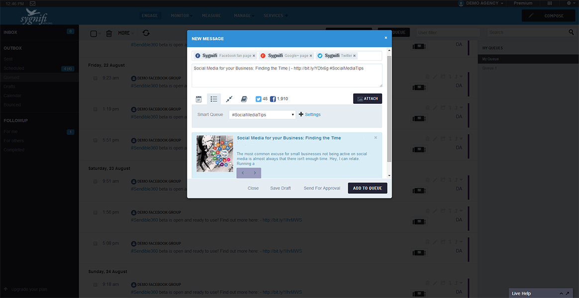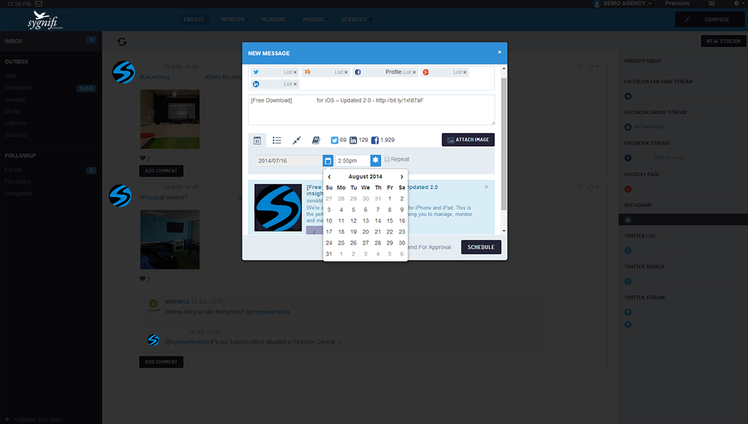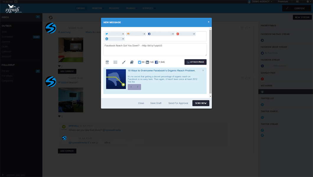 SmartSocial's advanced Compose Box, makes it easy to create content that displays beautifully across multiple social networks and channels by adapting to whichever social network you're targeting, so you can always be sure your posts will look great!