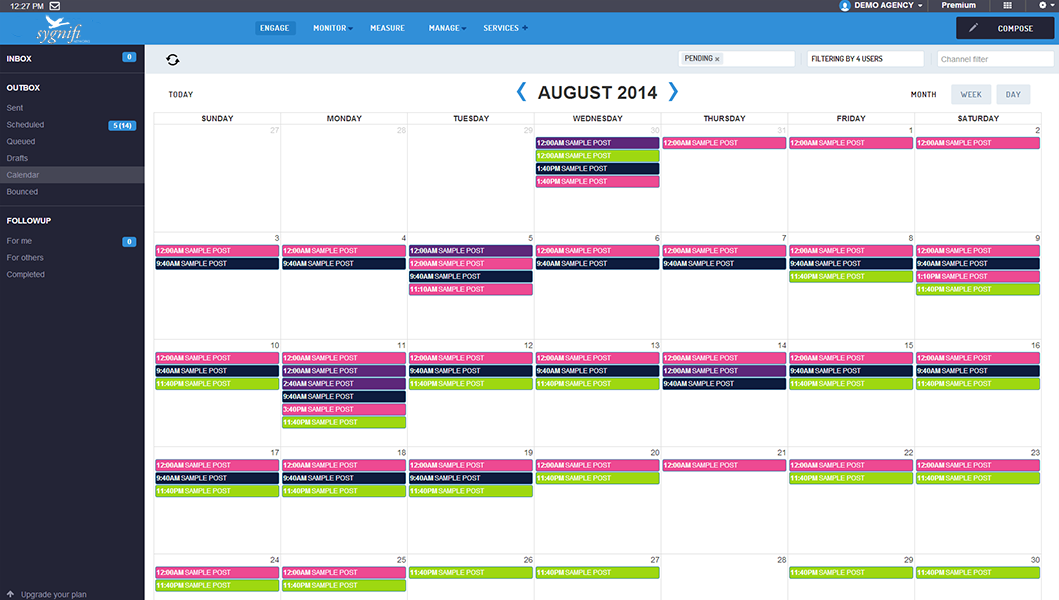 Develop an editorial process by mapping ideas, drafts and content on a calendar. Schedule posts to different social networks and use our filters to see which content is created by whom and which channels it will be posted to.